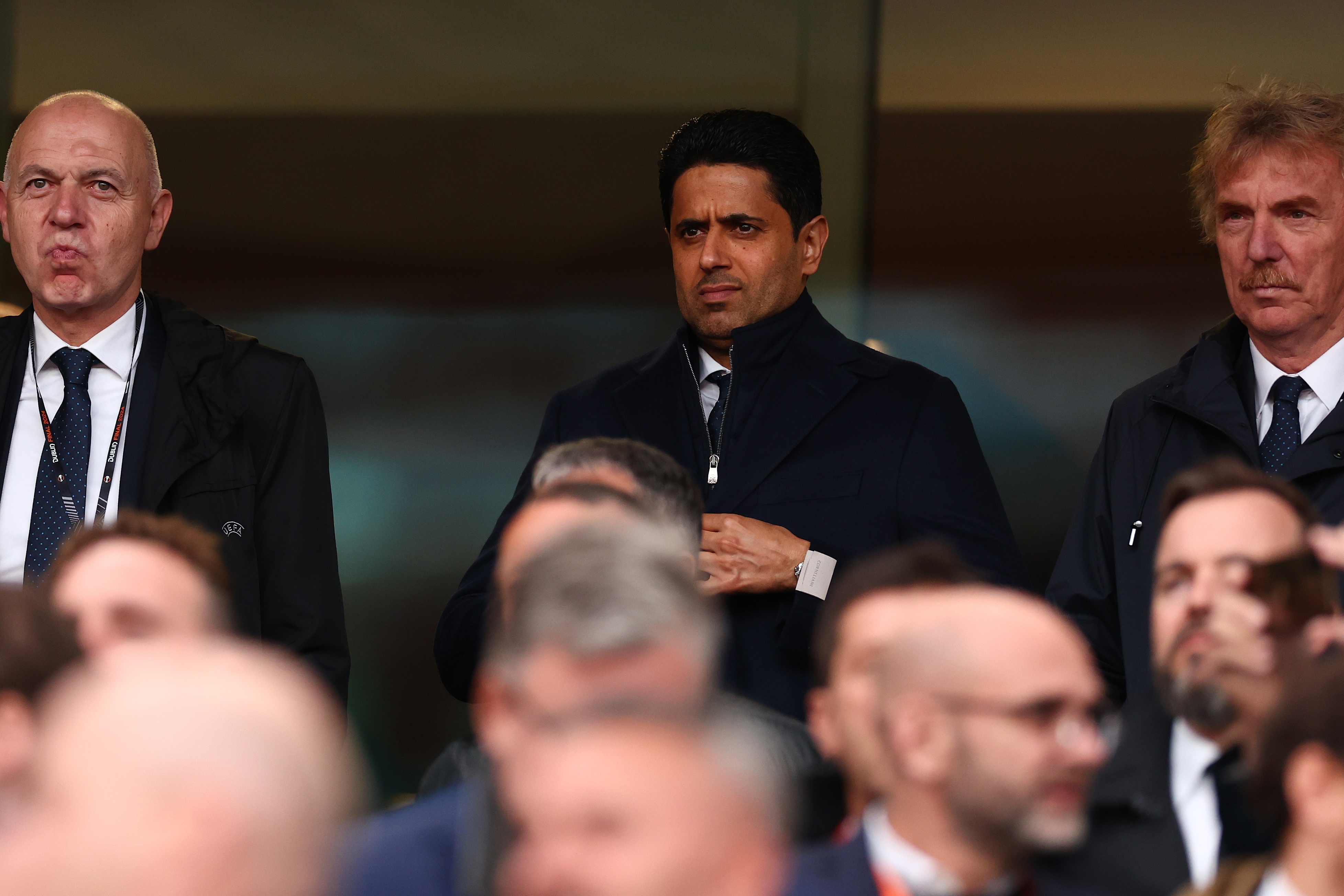 里昂球迷在比赛前打出巨幅画作,称纳赛尔在幕后操控一切,并称职业足球联盟管理层是“走狗”。里昂球迷组织还在北看台打出标语,要求纳赛尔退出法国足球。